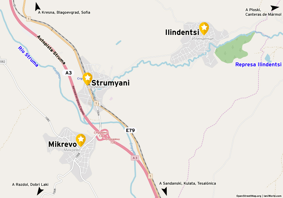 Es hora de regresar a la carretera E-79, a la localidad de Strumyani. Desde aquí te propongo tomar la ruta 1008 hacia el oeste. Hacemos menos de 2 kilómetros, cruzamos el Río Struma y llegamos a nuestro tercer destino del día de hoy: Mikrevo.