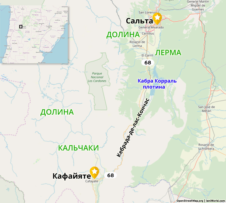 Это ущелье, также называемое Кебрада де Кафаяте, находится в 90 километрах к югу от города Сальта, столицы одноименной провинции.